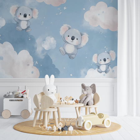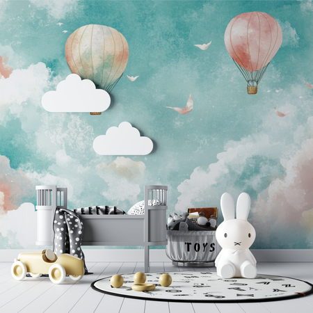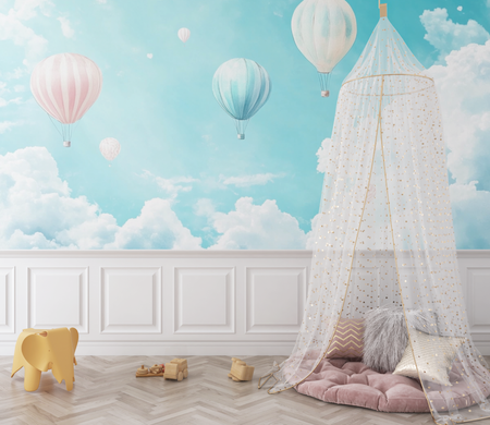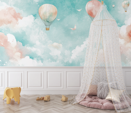 Mural Pastel Hot Air Balloon and Clouds Wallpaper