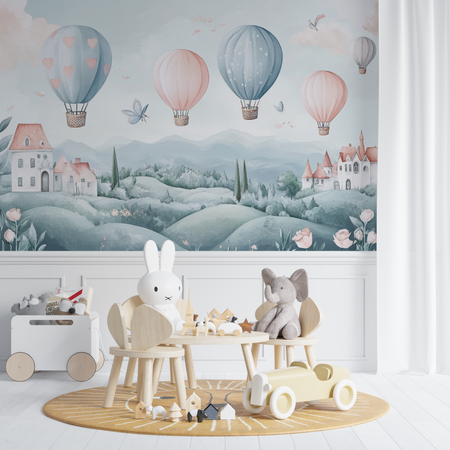 Mural Hot Air Balloon and Fairy-Tale Landscapes Wallpaper