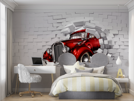 3D-Wandtapete für das Autozimmer eines Mädchens