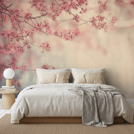 Wandtapete mit zartrosa Kirschblütenmotiv