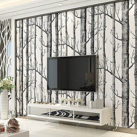 Wandbild-Tapete mit schwarz-weißem Baummotiv
