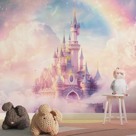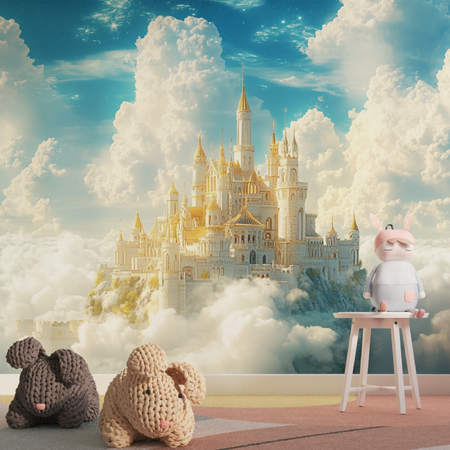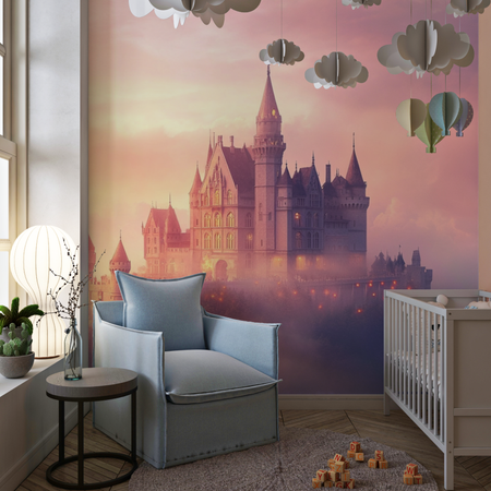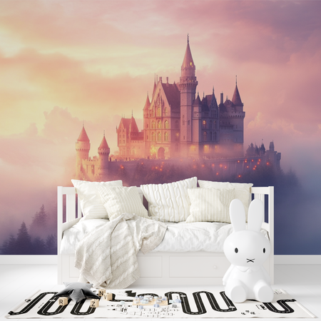 Wandtapete mit Prinzessinnenschloss und Wolken