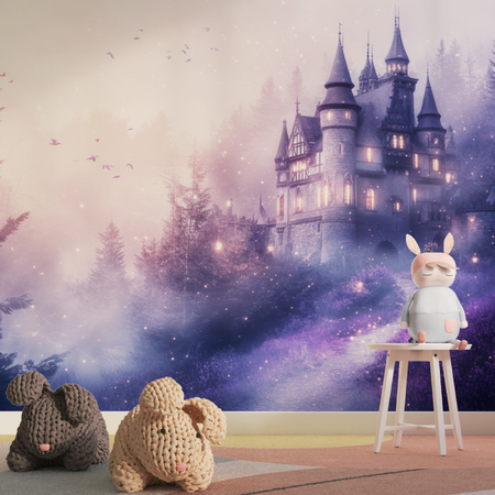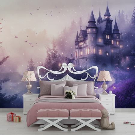 Wandtapete mit Prinzessinnenschloss und Blumen