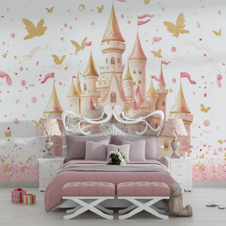 Wandbild Prinzessinnenschloss Rosa Baby Tapete