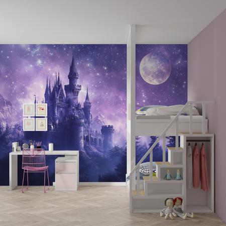 Ob ein raumfüllendes Wandbild von Cinderellas Schloss oder eine zartrosa Tapete mit Glitzerakzenten – unsere Designs verwandeln jedes Schlafzimmer in ein königliches Refugium. Mädchen lieben es, Prinzessinnenmotive mit Regenbögen, Einhörnern oder verwunschenen Schlössern zu kombinieren. Gestalten Sie die Wand hinter dem Bett mit einem Panorama-Wandbild einer Prinzessin und kombinieren Sie die übrigen Wände mit passenden Motiven für einen stimmigen Märcheneffekt.