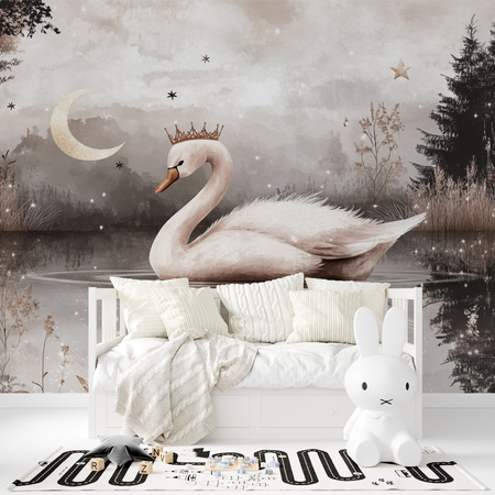 Wandbild Prinzessin Schwan Rosa Grau Tapete