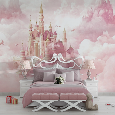 Wandbild Prinzessinnenschloss Rosa Tapete im Himmel