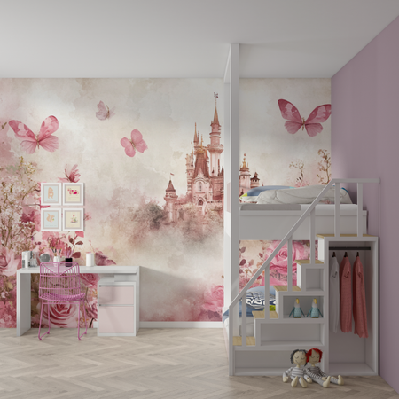 Wandtapete „Rosenschloss“ für Mädchenzimmer