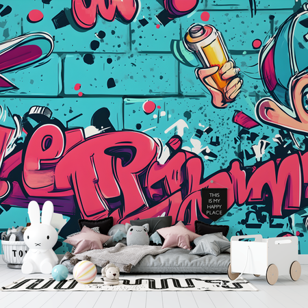 Wandbild Graffiti Backsteinwand Teenager-Tapete