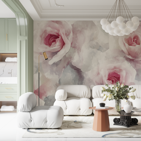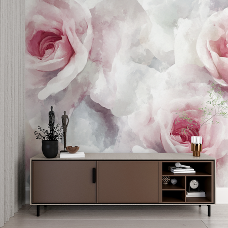 Wandtapete mit Aquarellmotiv und rosa Blumen