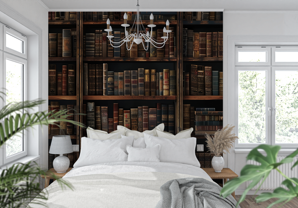 Bibliotheks-Tapete in Trompe-l'oeil-Optik