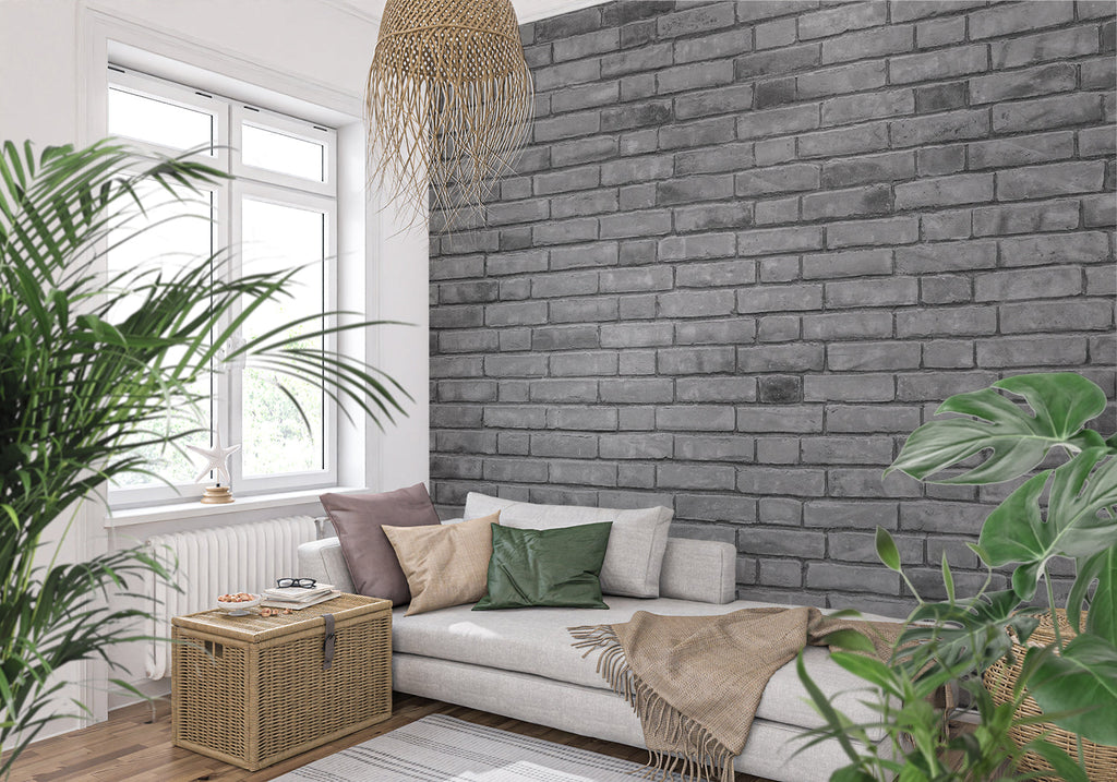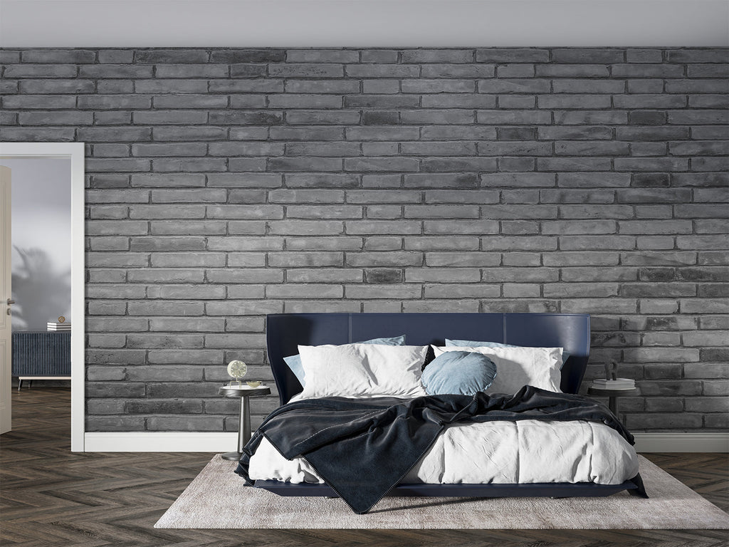 Wandtapete in Dunkelgrau mit Backsteinmuster