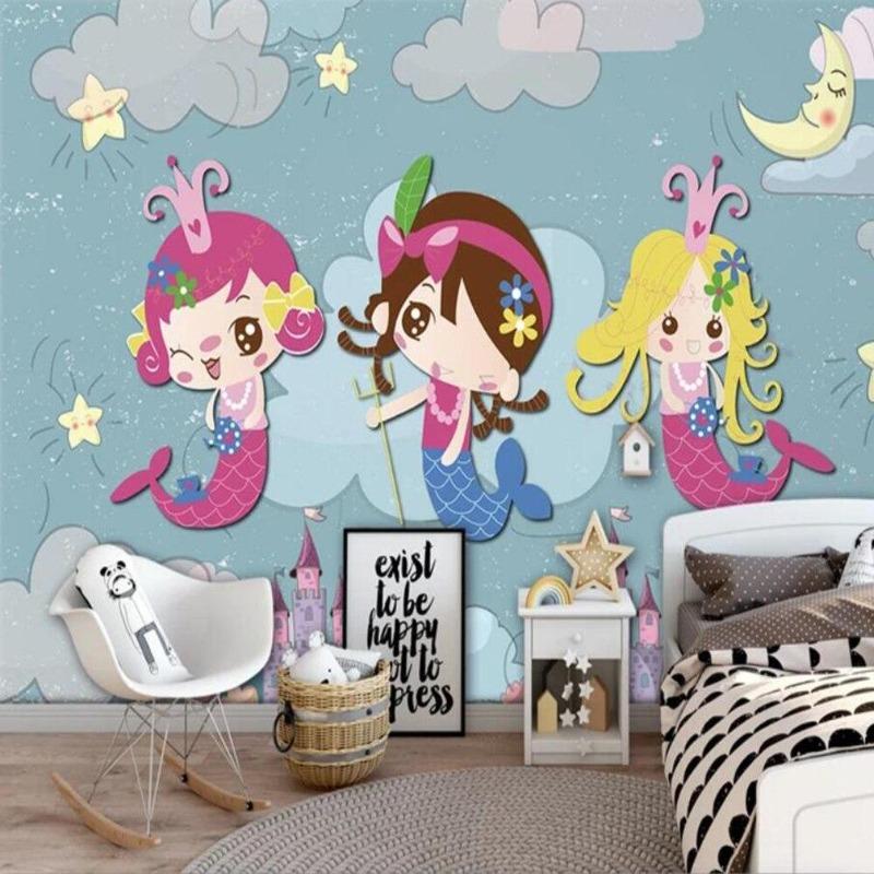 Klassische Mädchentapete mit Meerjungfrauen-Trio