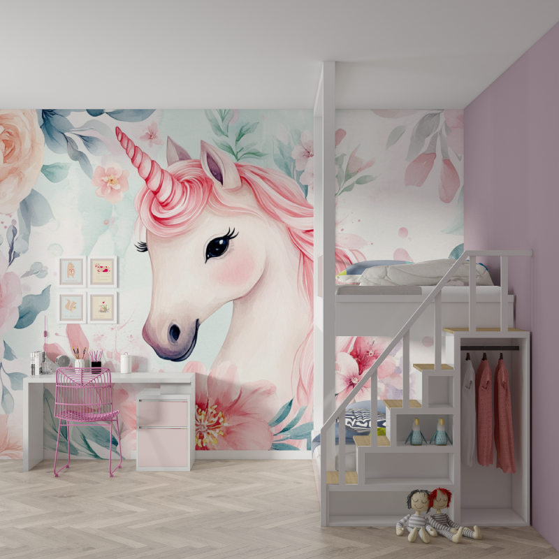 Günstige Wandtapete mit Blumen- und Einhornmotiv