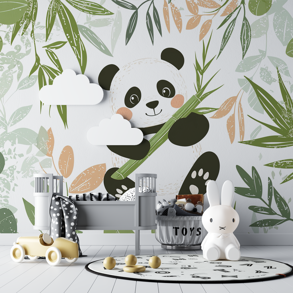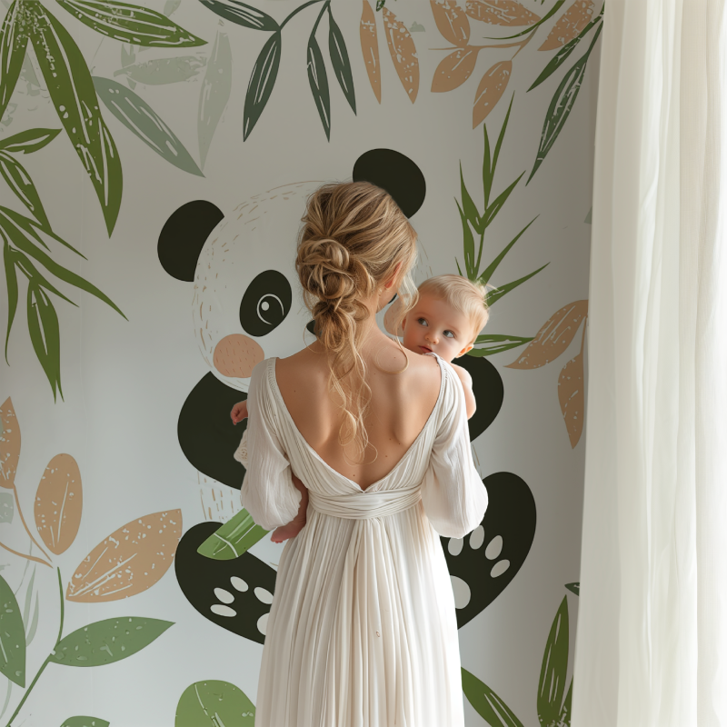 Wandtapete mit grünem Panda fürs Babyzimmer