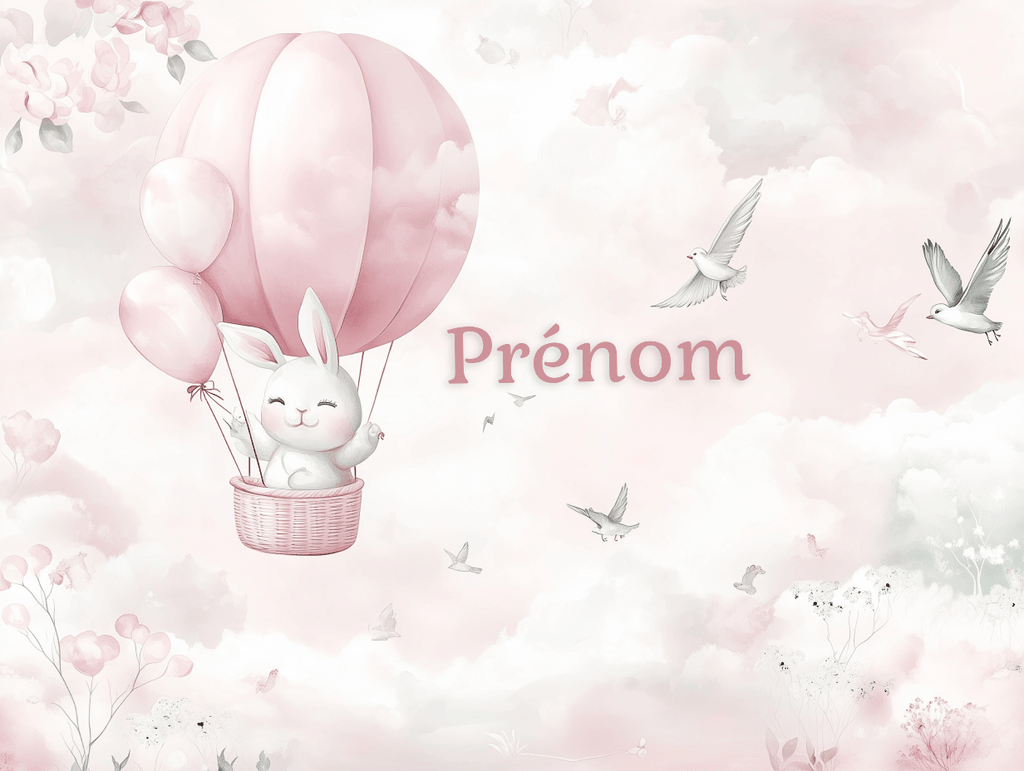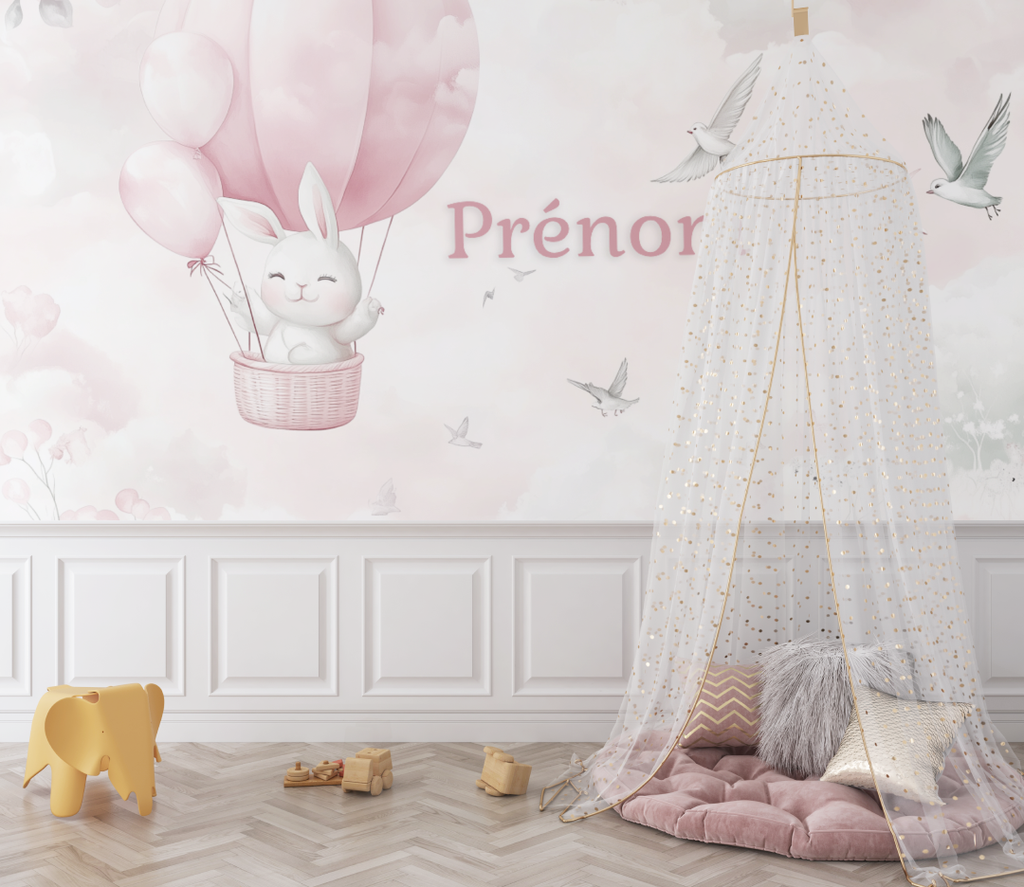 Wandbild mit Babynamen und Kaninchen-Tapete