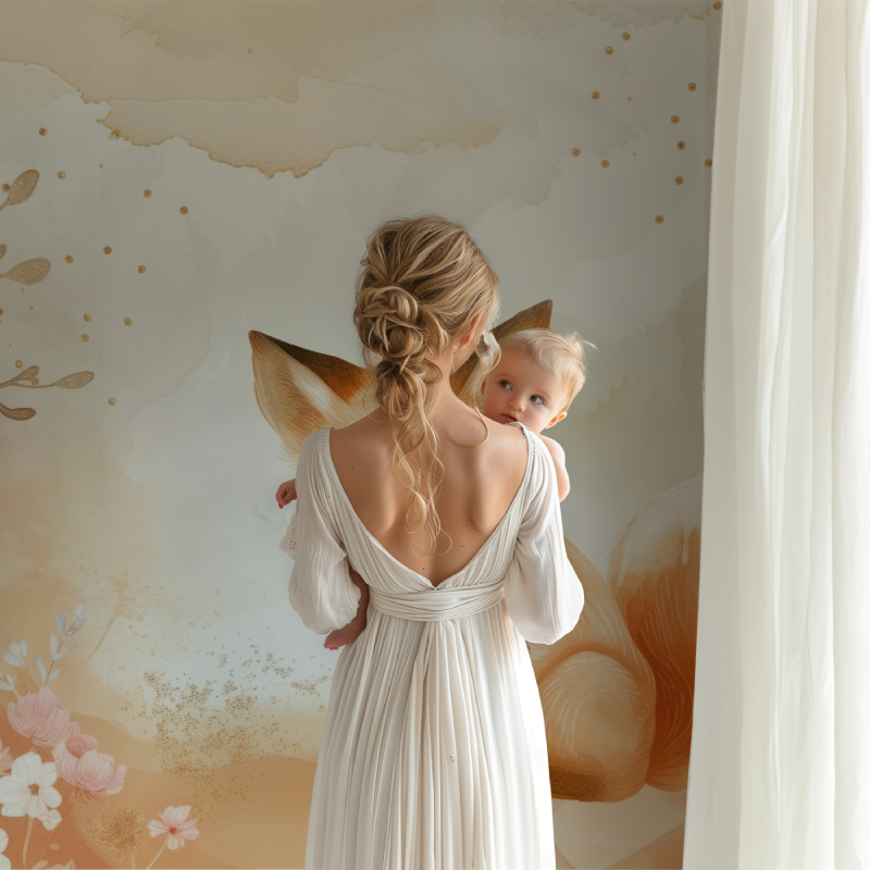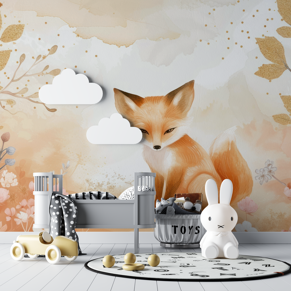 Panorama-Tapete mit Blumen- und Fuchsmotiv