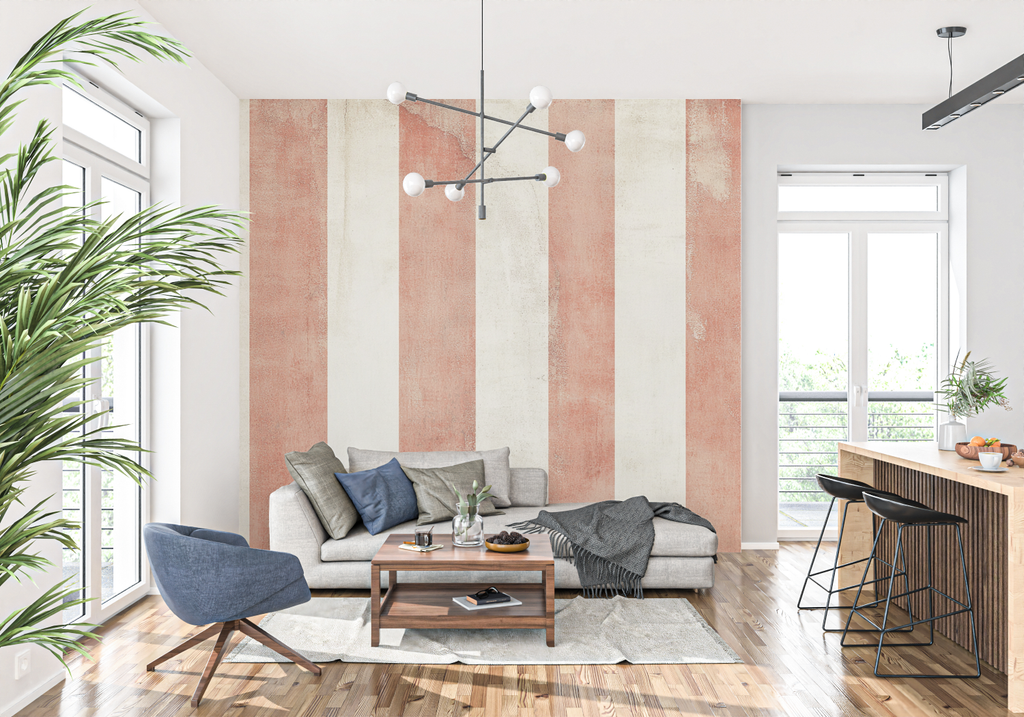 Wandtapete in Terrakotta mit vertikalen Streifen