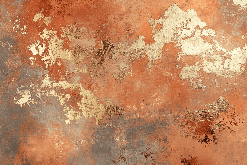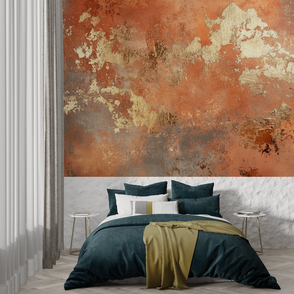 Wandtapete in Terrakotta mit metallisch-goldenen Reflexen