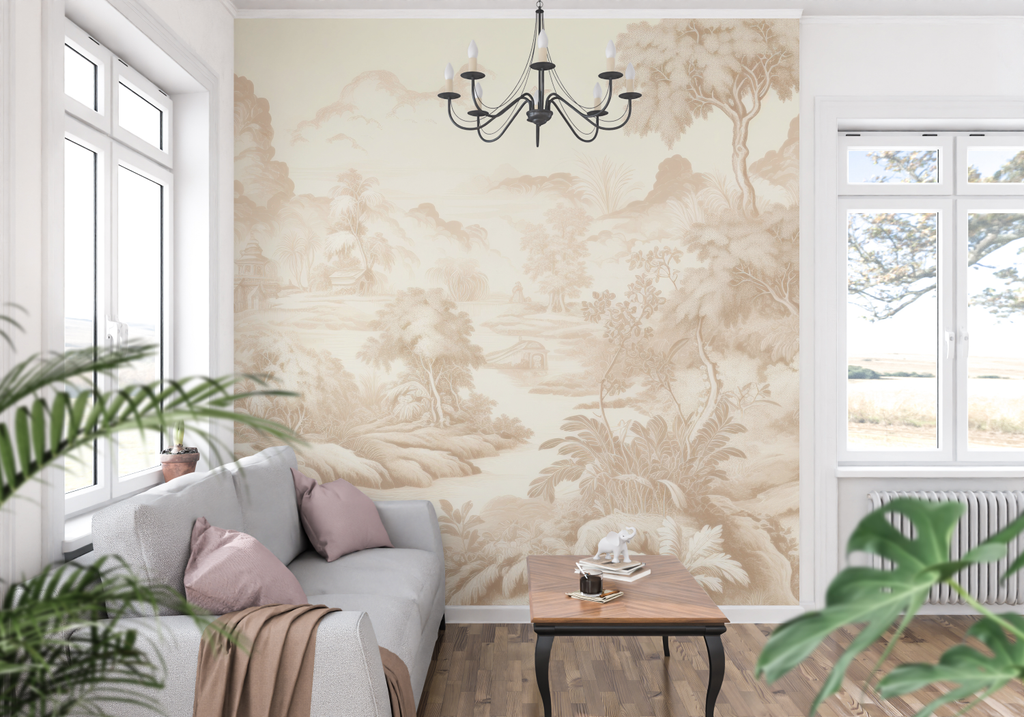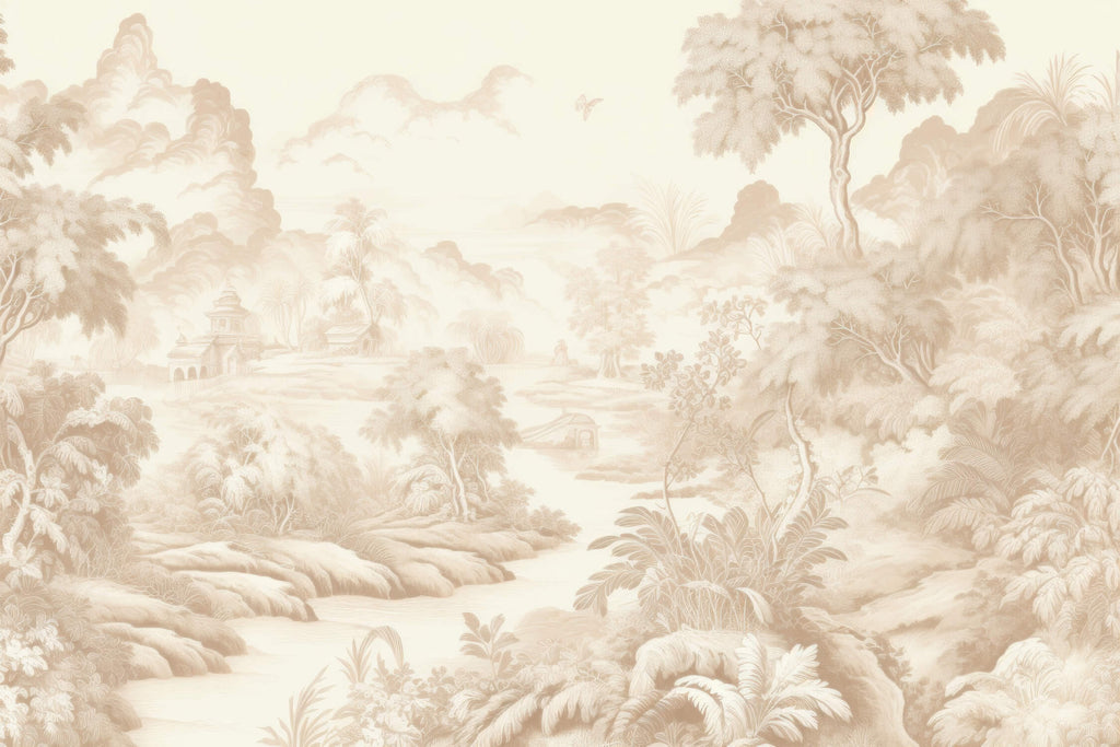 Mural Beige Toile de Jouy Tapete