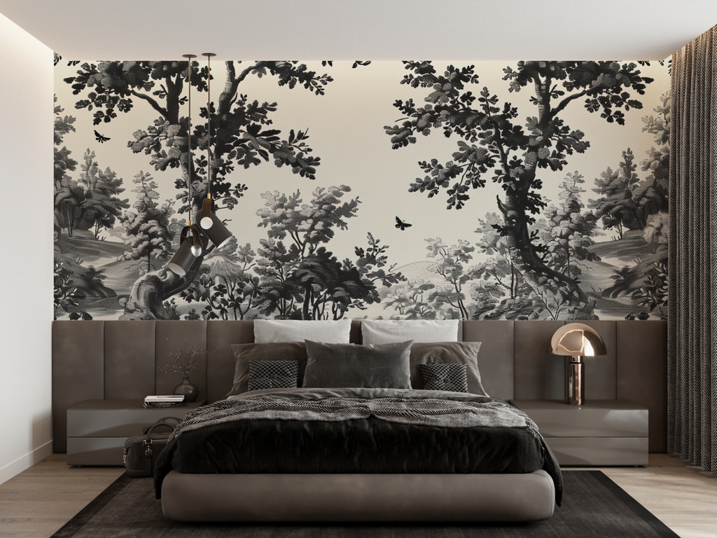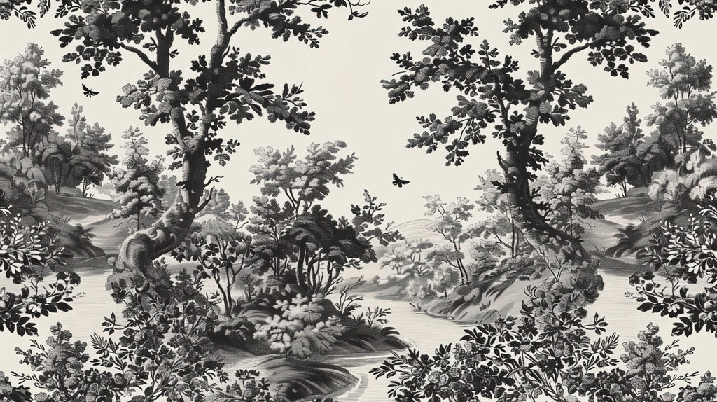 Mural Toile de Jouy Tapete Schwarz-Weiß-Landschaft