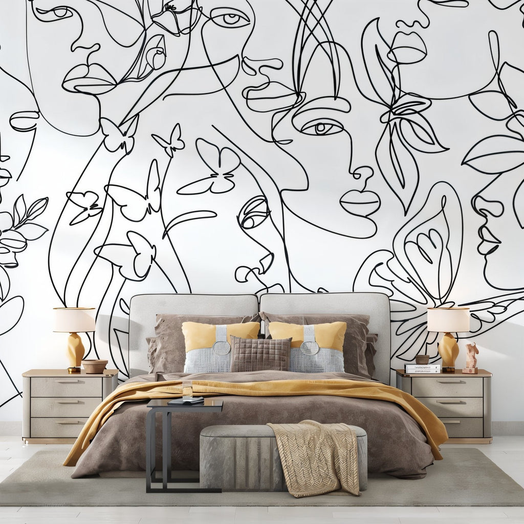 Wandbild-Tapete mit schwarz-weißem Gesicht