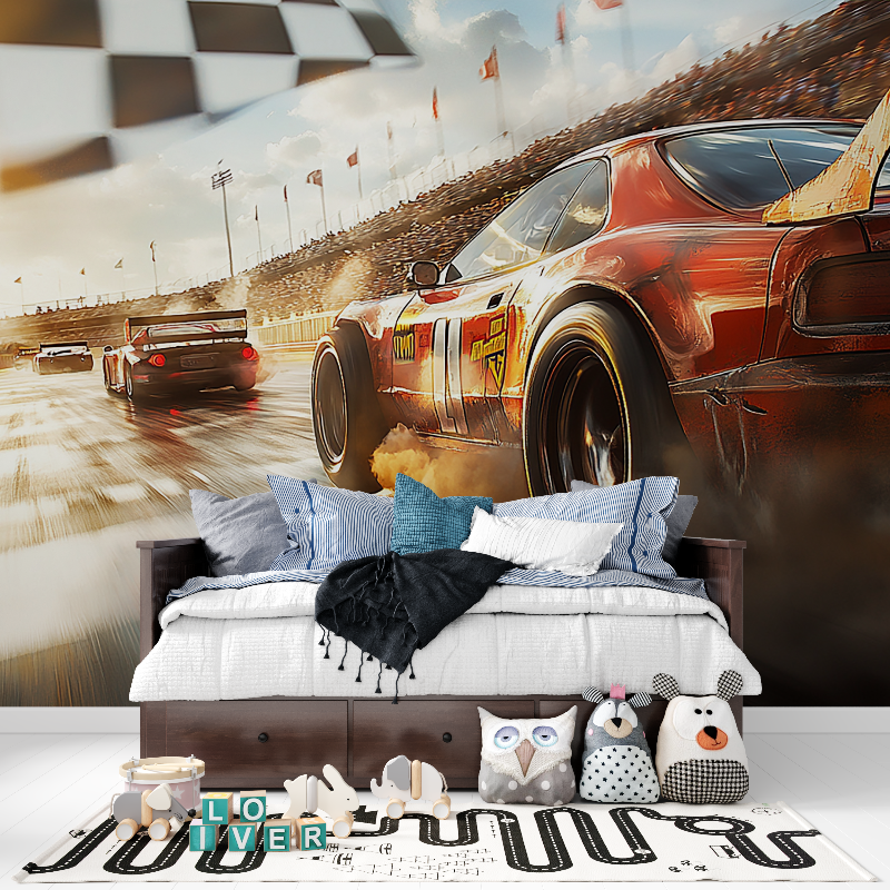 Wandtapete mit Rennwagenmotiv