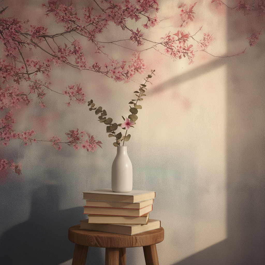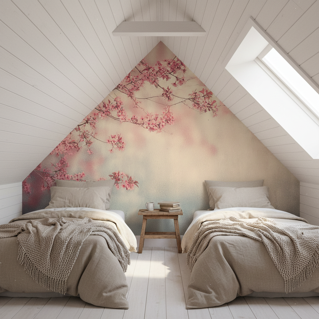 Wandtapete mit zartrosa Kirschblütenmotiv