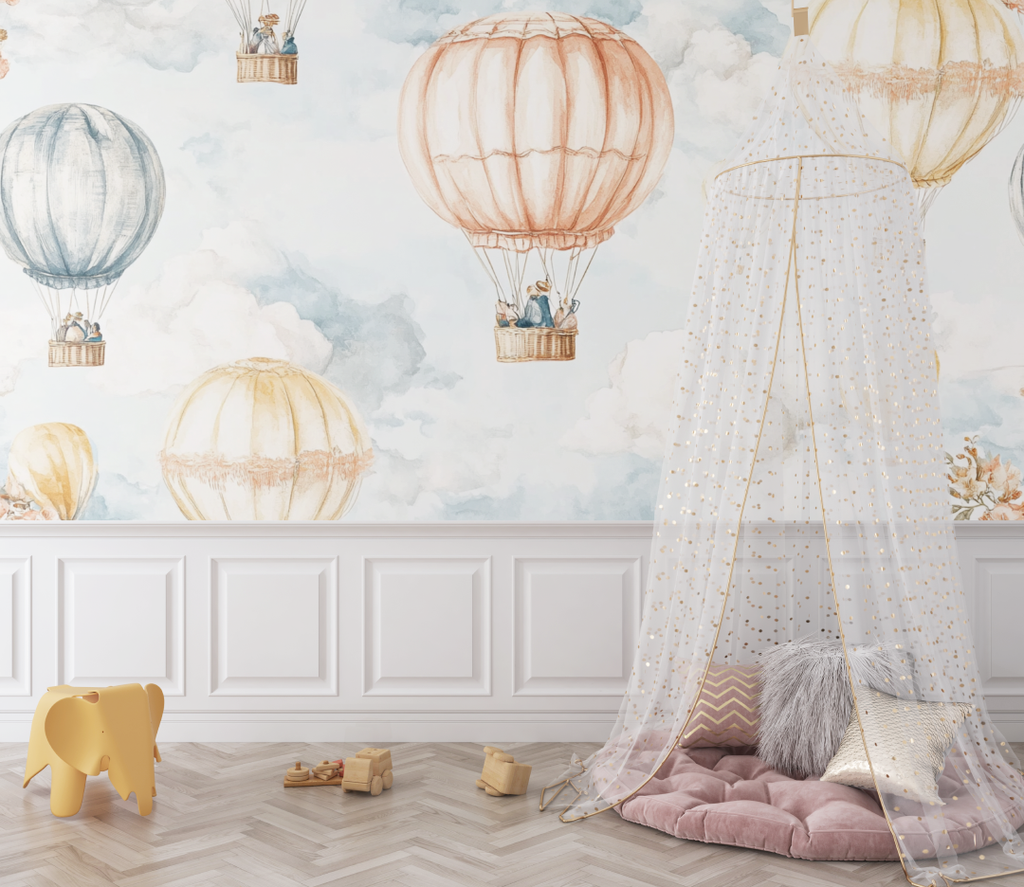 Die Vintage Aquarell Heißluftballon Tapete ist eine brillante Wahl, wenn Sie davon träumen, Ihrem Raum einen Hauch von künstlerischem Flair und eine Prise Laune zu verleihen. Stellen Sie sich sanfte Heißluftballons vor, die über einen ruhigen blauen Himmel gleiten – diese Tapete ist genau das Richtige, um in jedem Kinderzimmer ein beruhigendes, inspirierendes Nest zu schaffen. Mit ihrem zarten Aquarellstil und dem charmanten Retro-Vibe ist sie sowohl einzigartig als auch bezaubernd.