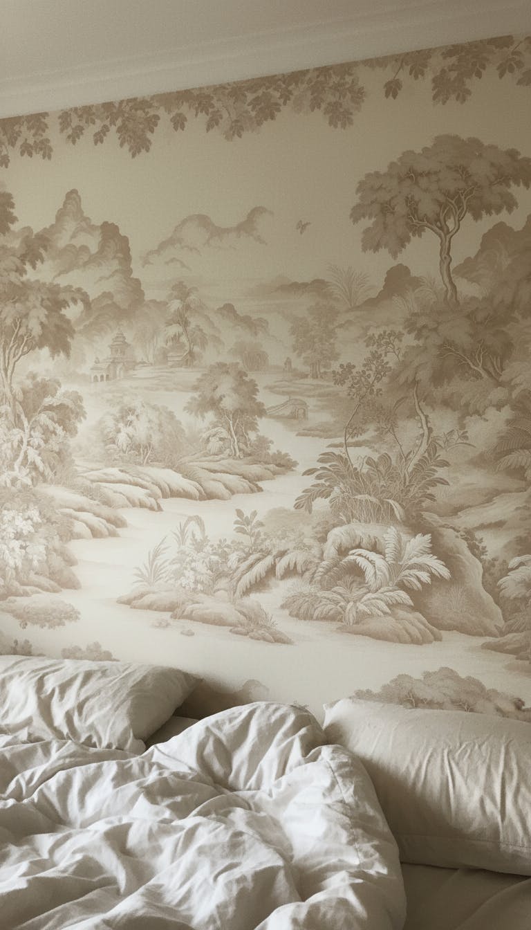 Muur Beige Toile de Jouy Behang