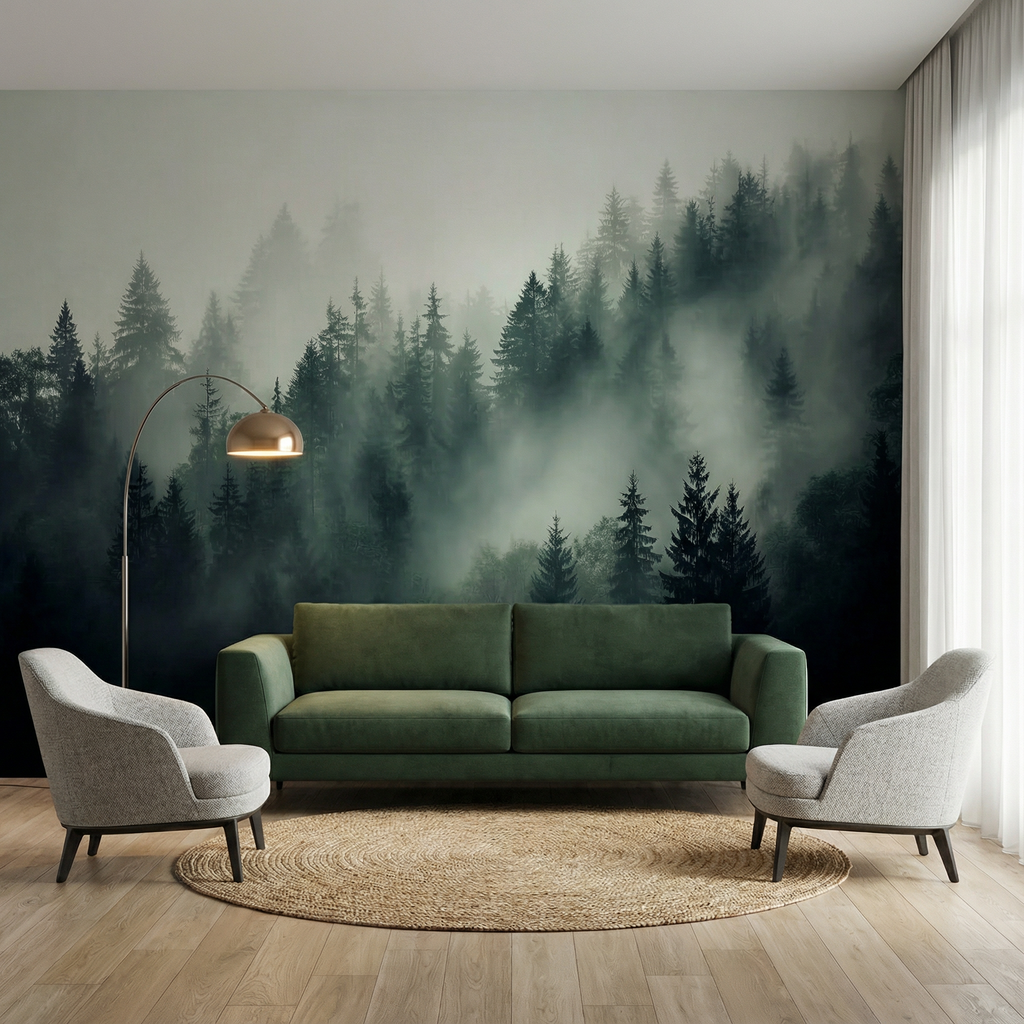 Dark Moody Fog Forest Mural Wallpaper