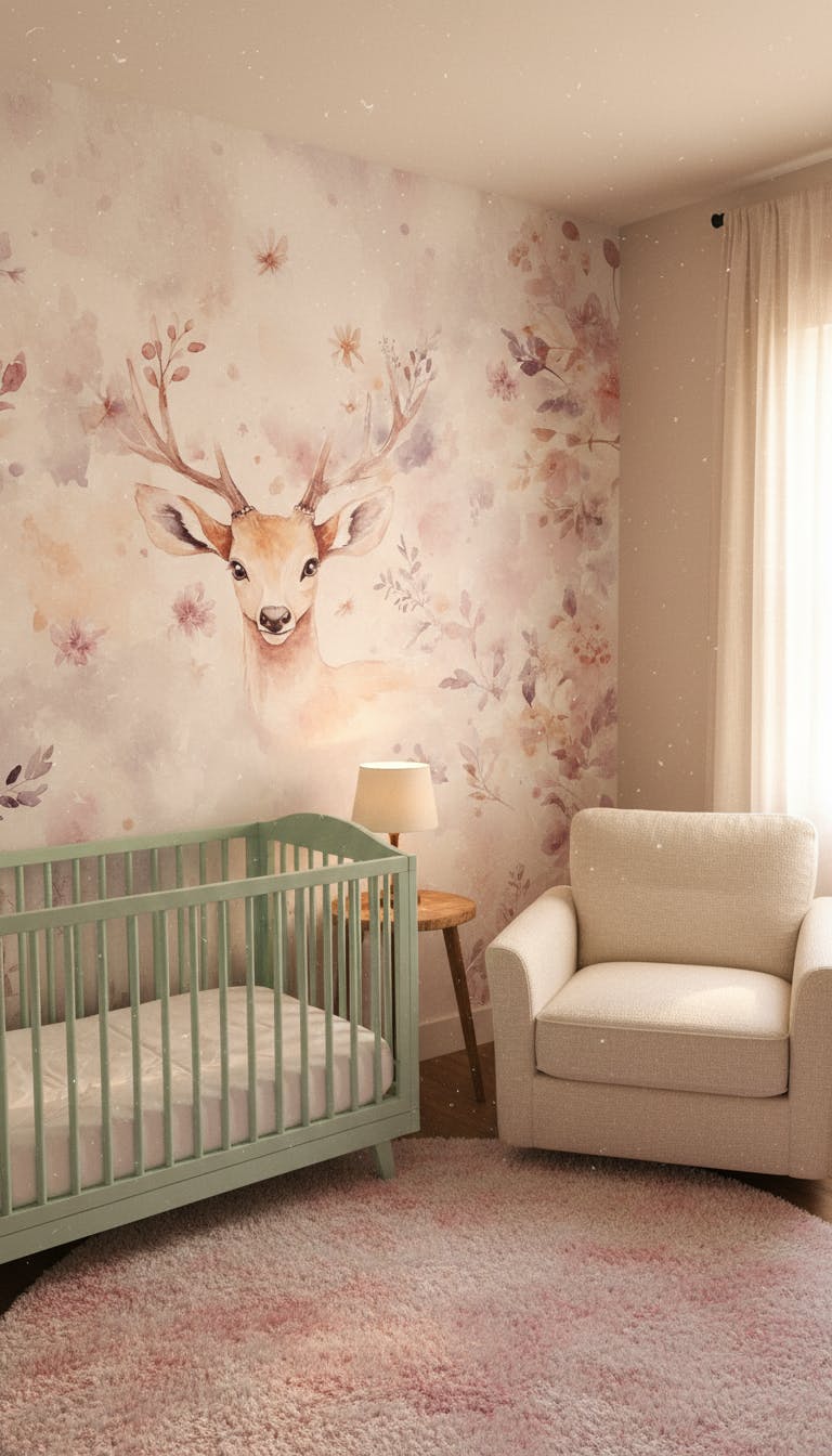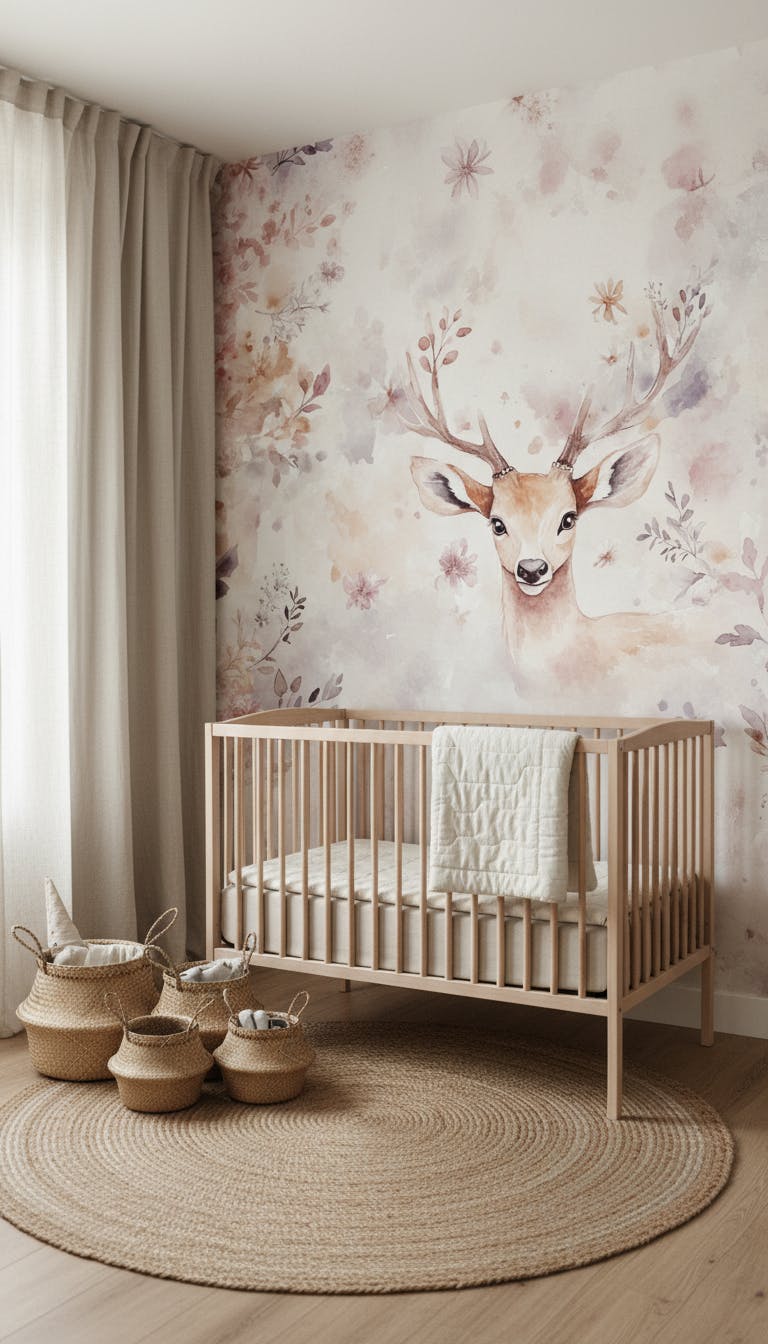 Mural Animal Wallpaper Deer Wreath Small Flowers