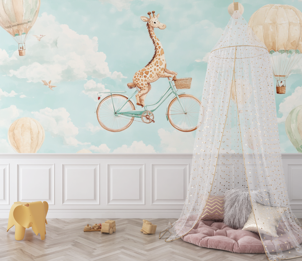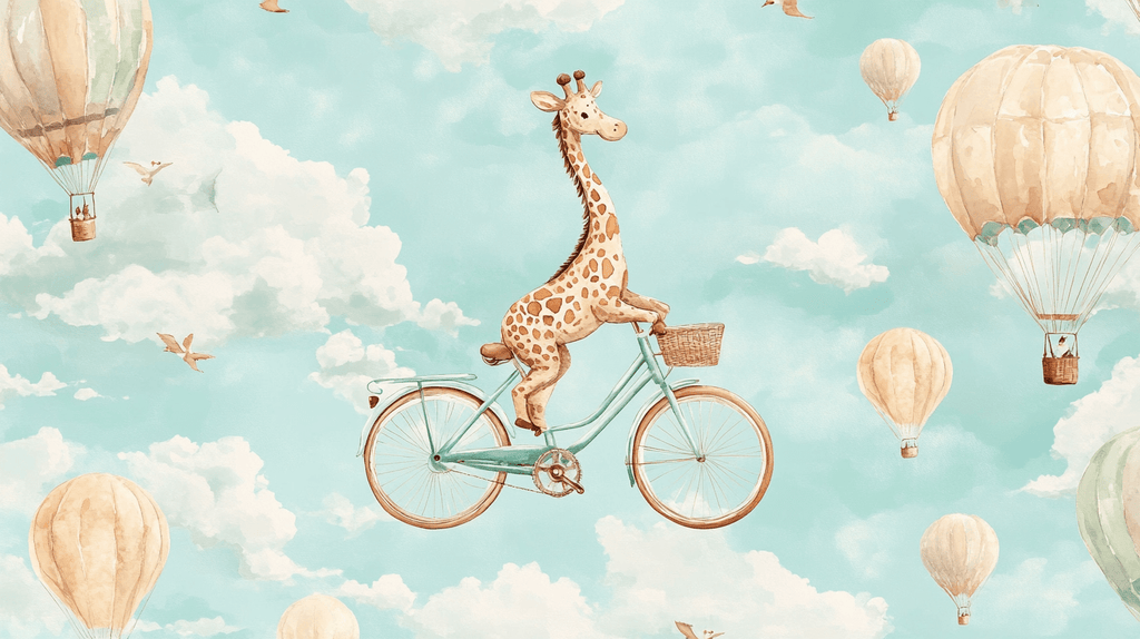 Mural Beige Giraffe on Bicycle Animal Wallpaper