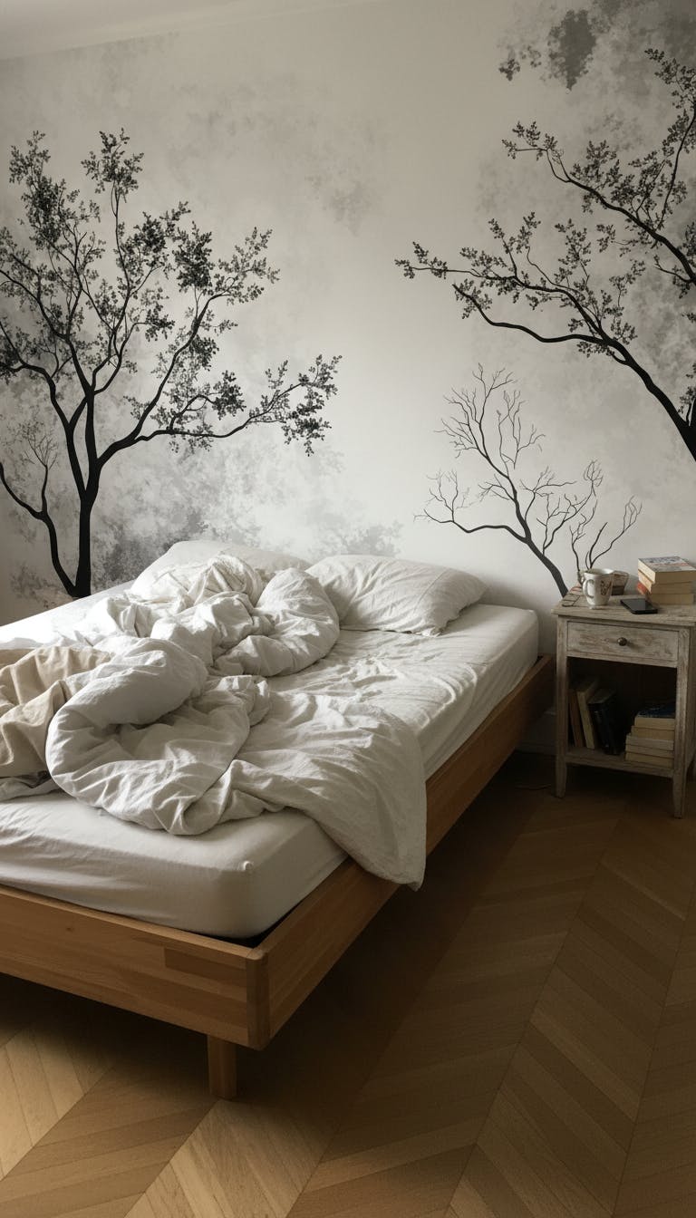 Mural Black and White Tree Wallpaper Hallway
