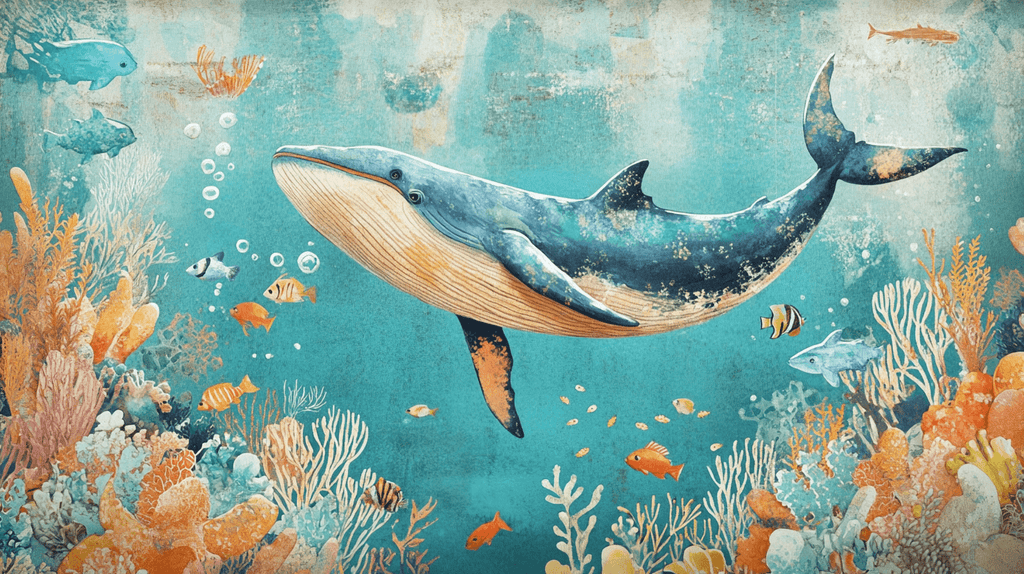 Mural Whale and Coral Wallpaper