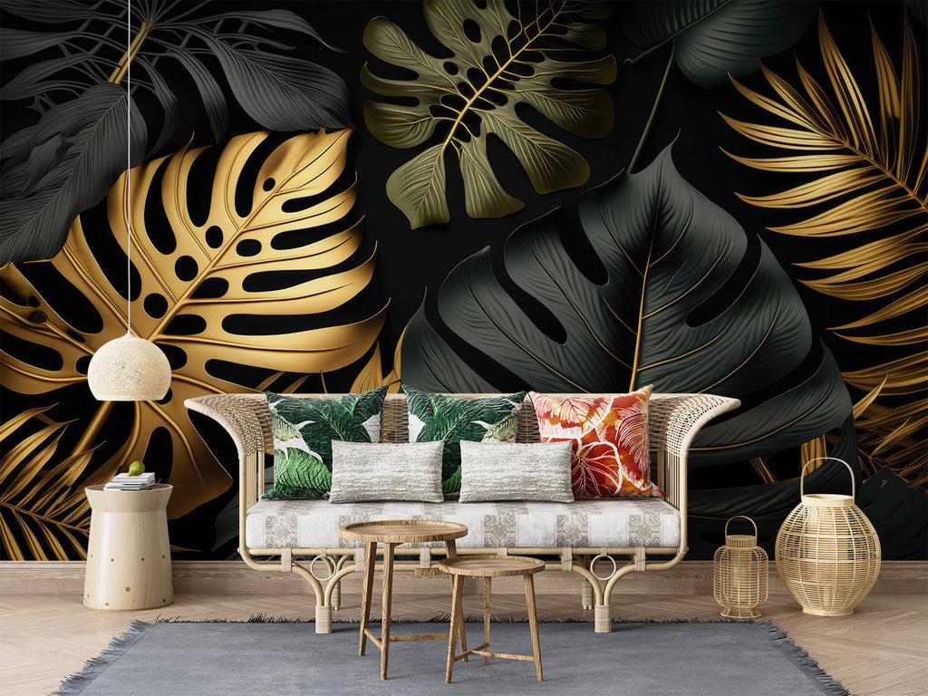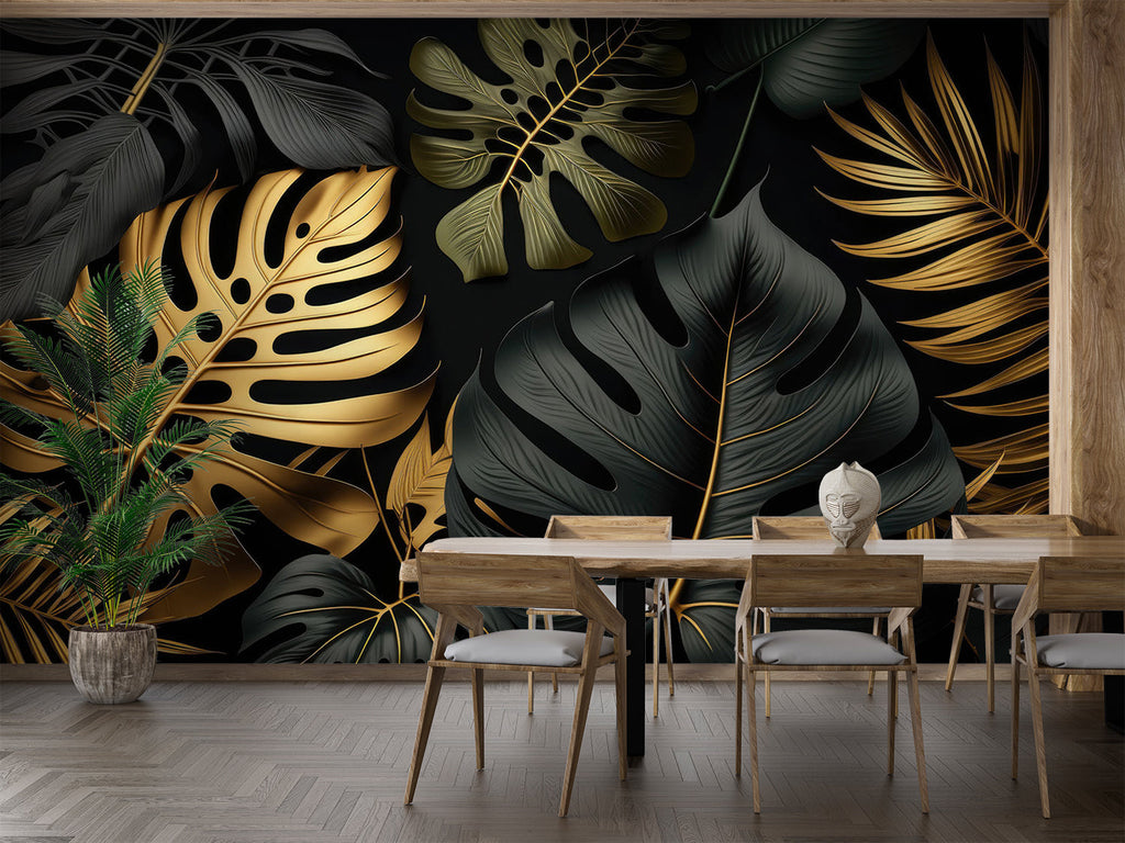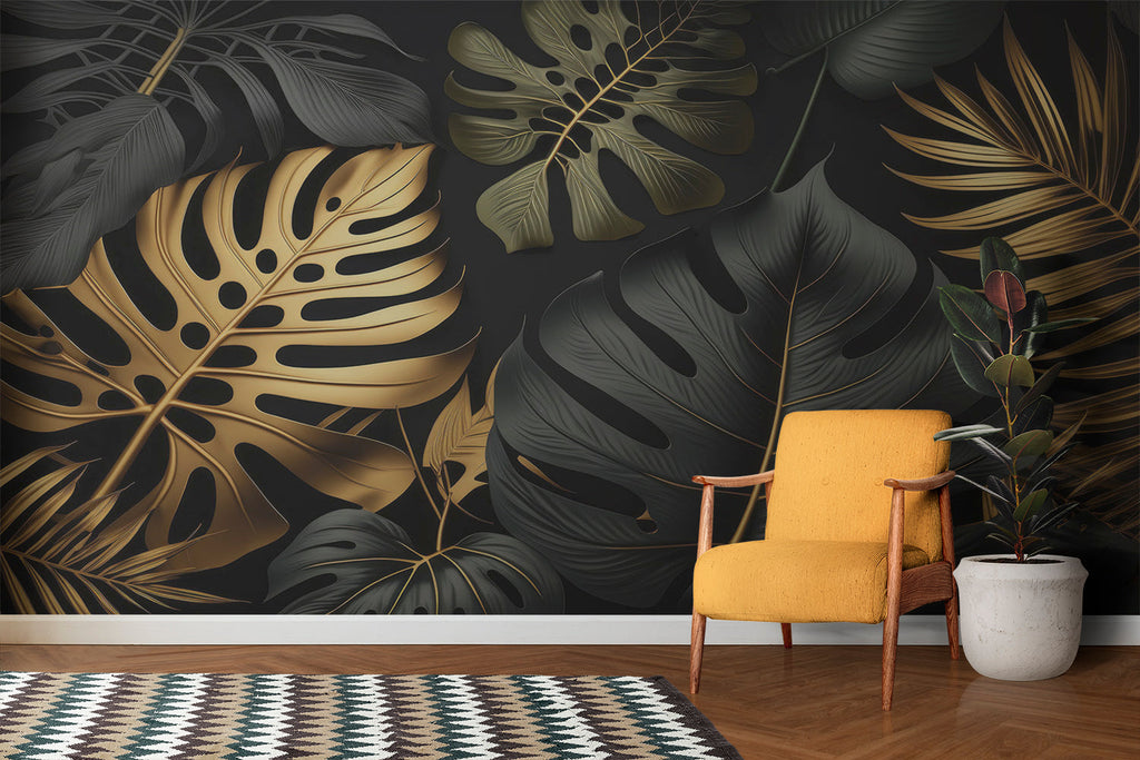 Mural Black and Gold Foliage Wallpaper