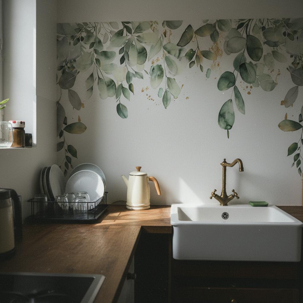 Mural Watercolor Green Foliage Wallpaper