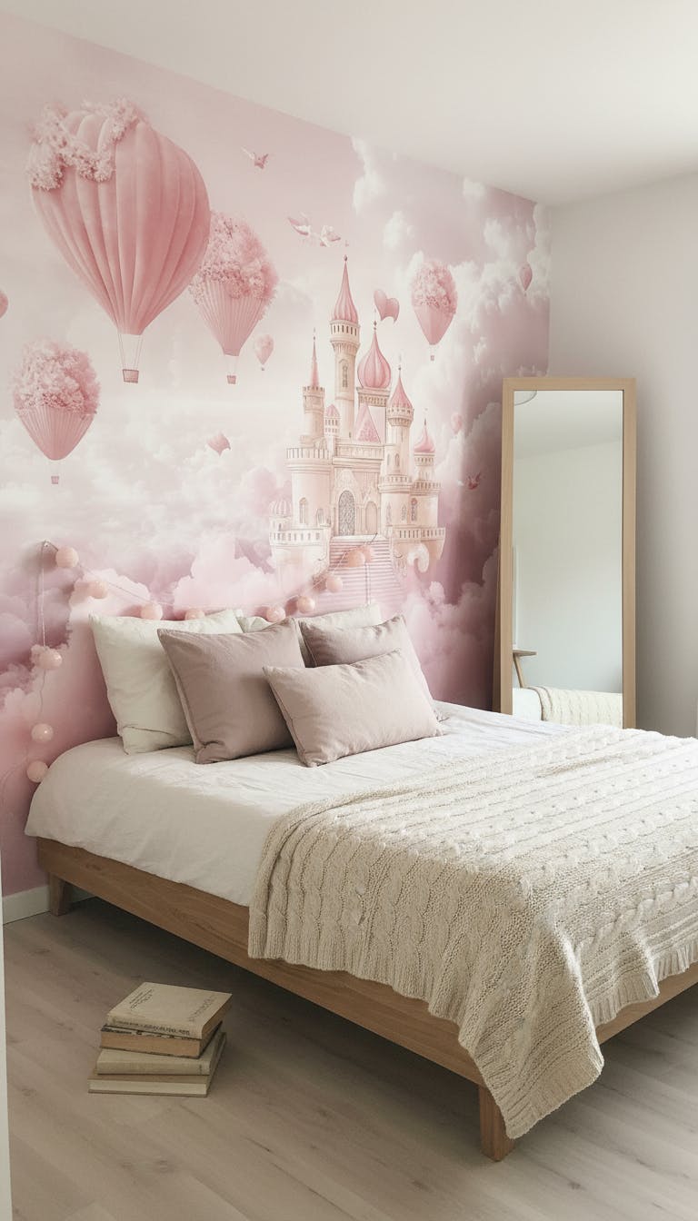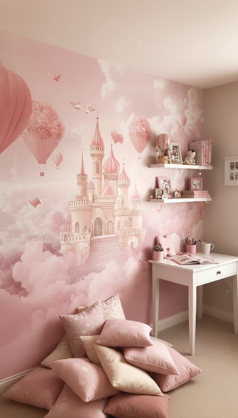 Mural Princess Hot Air Balloons Castle Wallpaper