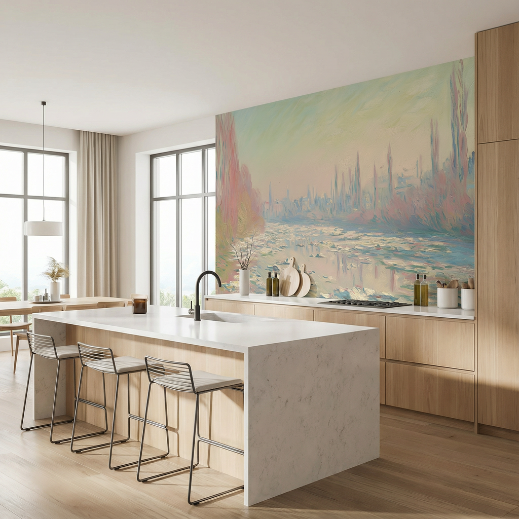 Pastel Impressionist River Landscape Mural Wallpaper